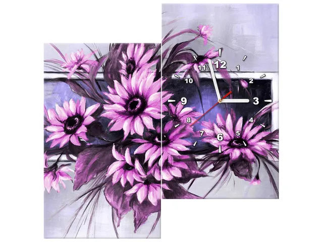 Úvod » Obrazy » Obrazy s hodinami » Fialové slnečnice Obraz s hodinami