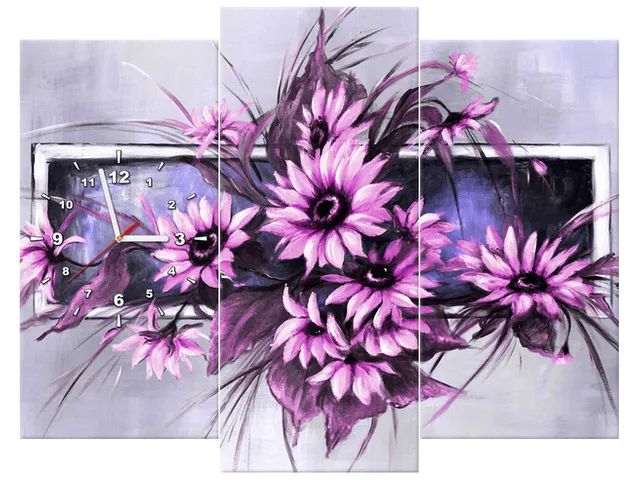 Úvod » Obrazy » Obrazy s hodinami » Fialové slnečnice Obraz s hodinami
