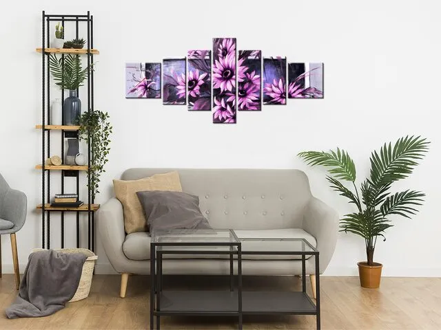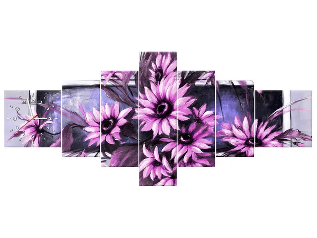 Úvod » Obrazy » Obrazy s hodinami » Fialové slnečnice Obraz s hodinami