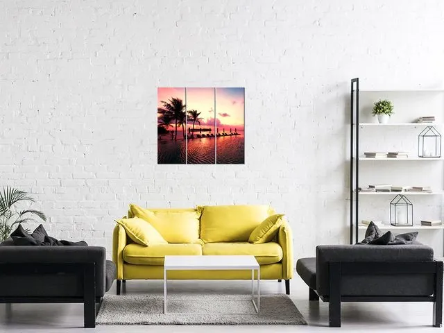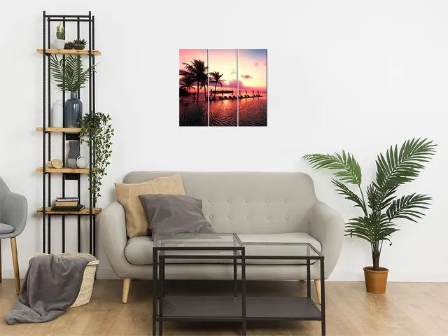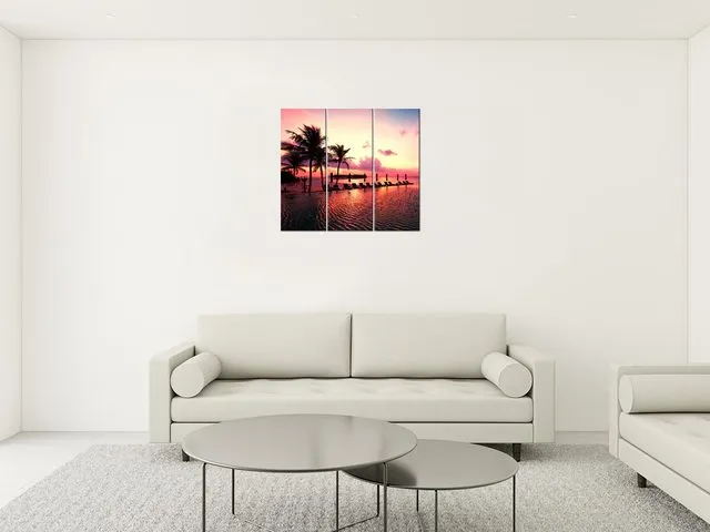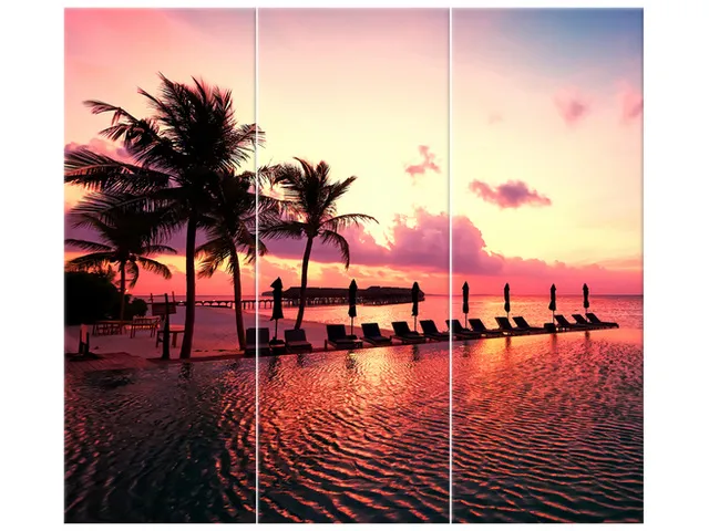 Úvod » Obrazy » Obrazy na plátne » Príroda » Fotoobraz Západ slnka v ružovej na pláži v Maledivách
