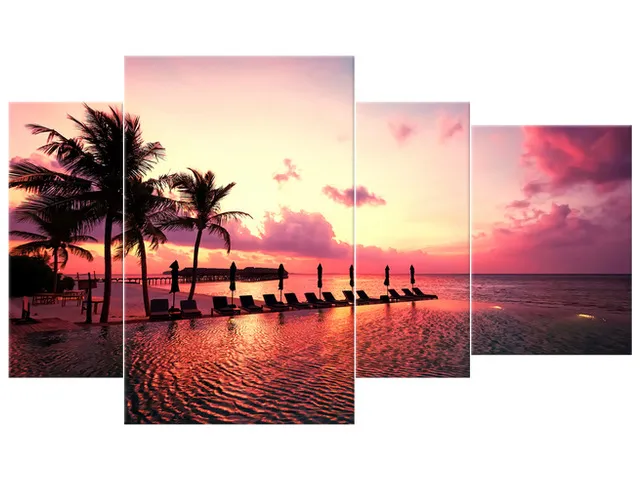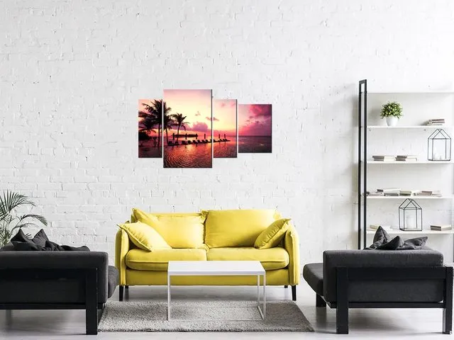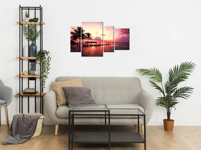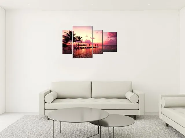 Úvod » Obrazy » Obrazy na plátne » Príroda » Fotoobraz Západ slnka v ružovej na pláži v Maledivách