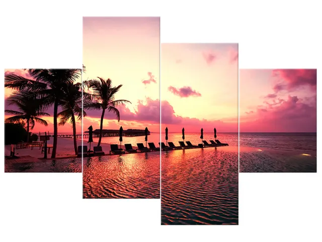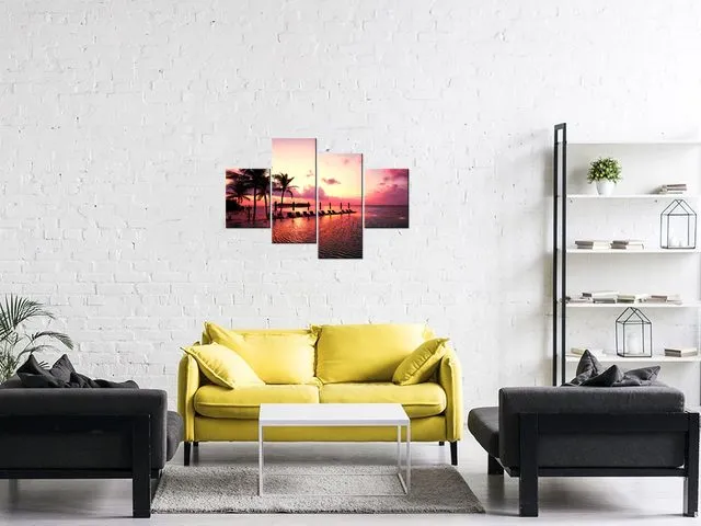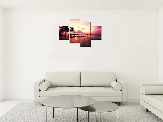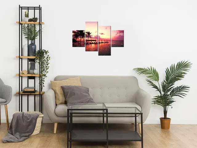 Úvod » Obrazy » Obrazy na plátne » Príroda » Fotoobraz Západ slnka v ružovej na pláži v Maledivách
