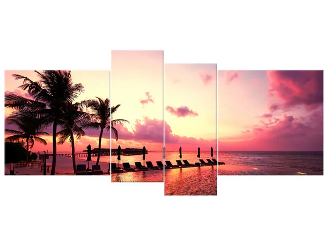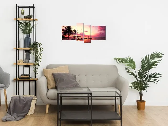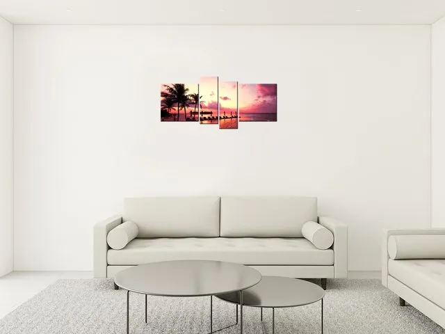 Úvod » Obrazy » Obrazy na plátne » Príroda » Fotoobraz Západ slnka v ružovej na pláži v Maledivách