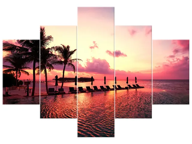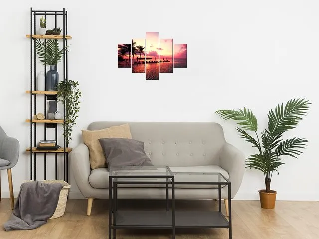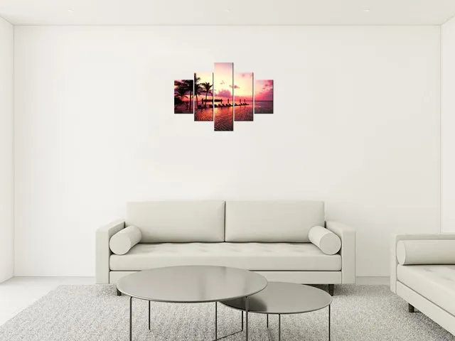 Úvod » Obrazy » Obrazy na plátne » Príroda » Fotoobraz Západ slnka v ružovej na pláži v Maledivách