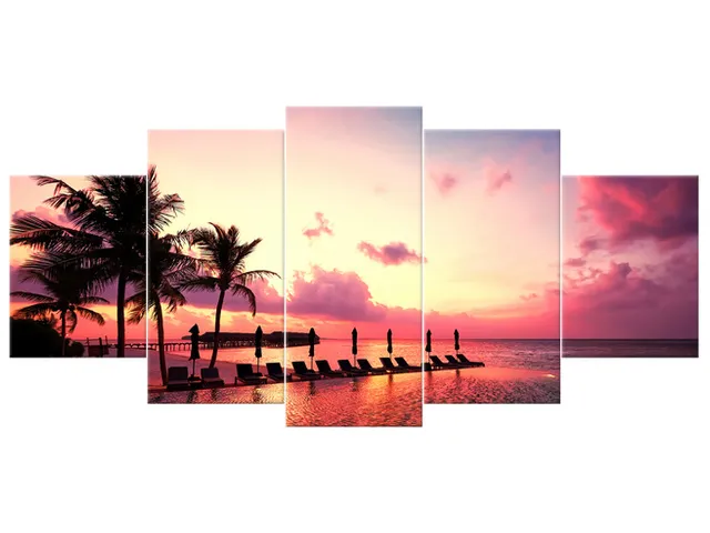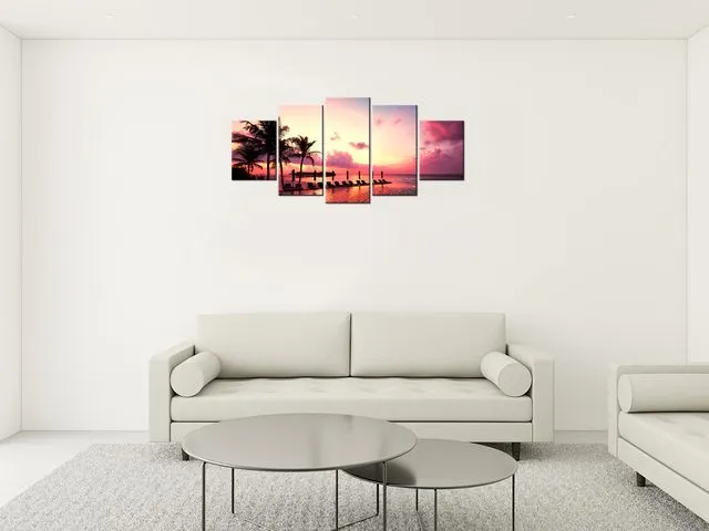 Úvod » Obrazy » Obrazy na plátne » Príroda » Fotoobraz Západ slnka v ružovej na pláži v Maledivách