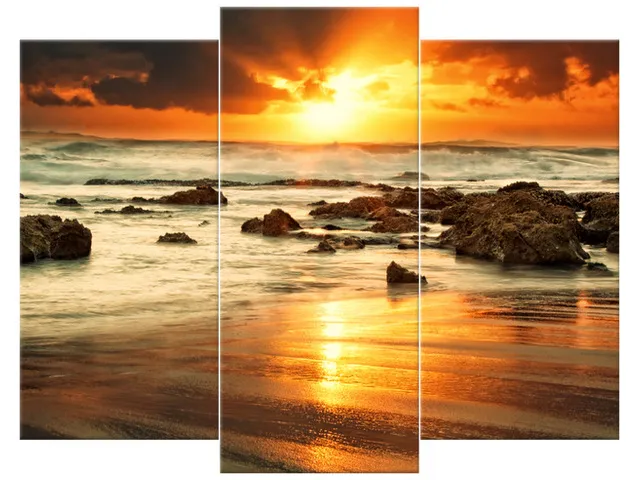 Úvod » Obrazy » Obrazy na plátne » Oheň a voda » Fotoobraz na stenu Východ slnka nad rozbúreným oceánom