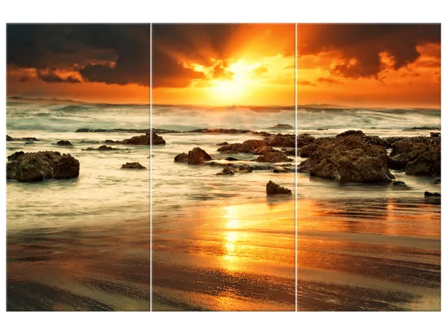 4161A_3L Fotoobraz na stenu Východ slnka nad rozbúreným oceánom |
