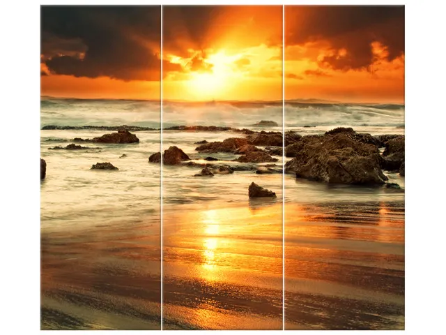 Úvod » Obrazy » Obrazy na plátne » Oheň a voda » Fotoobraz na stenu Východ slnka nad rozbúreným oceánom