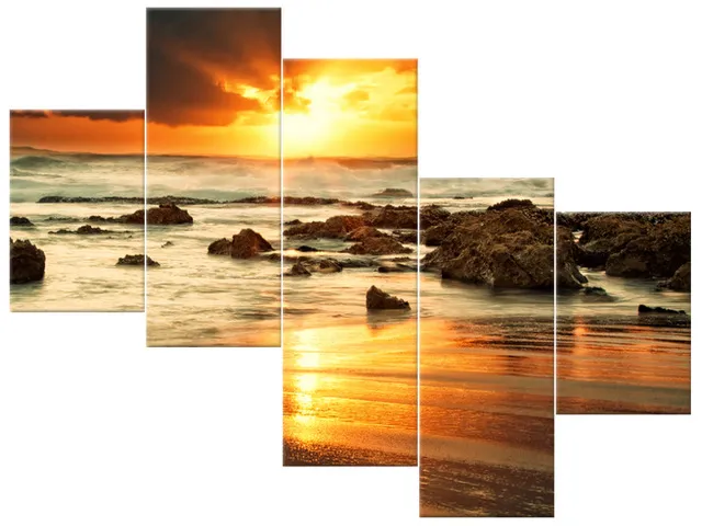 Úvod » Obrazy » Obrazy na plátne » Oheň a voda » Fotoobraz na stenu Východ slnka nad rozbúreným oceánom