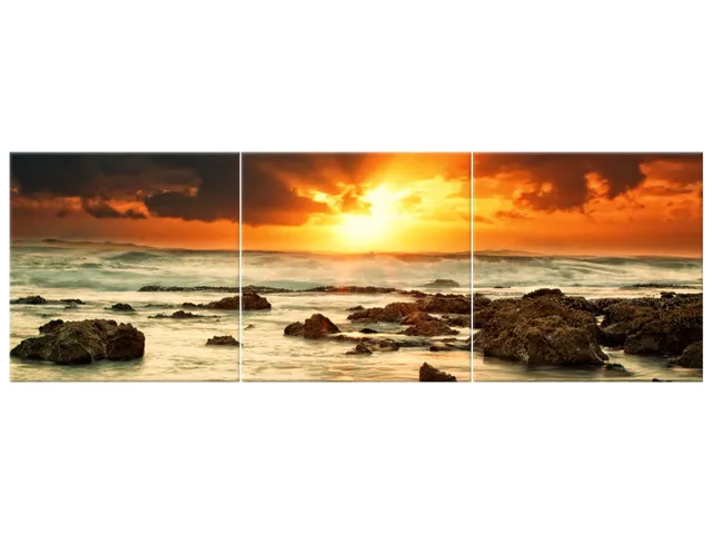 4161A_3L Fotoobraz na stenu Východ slnka nad rozbúreným oceánom |