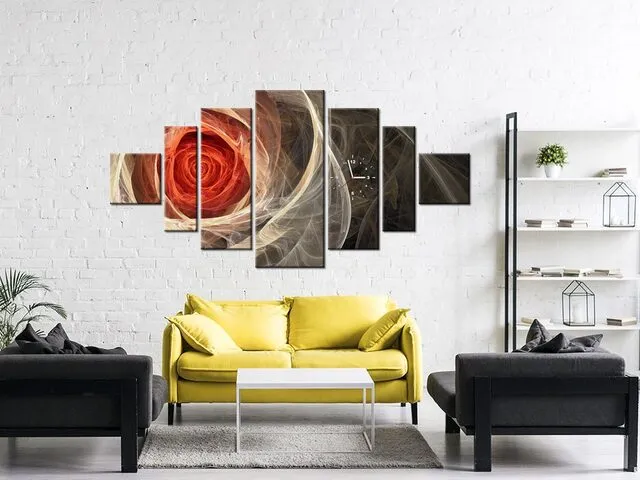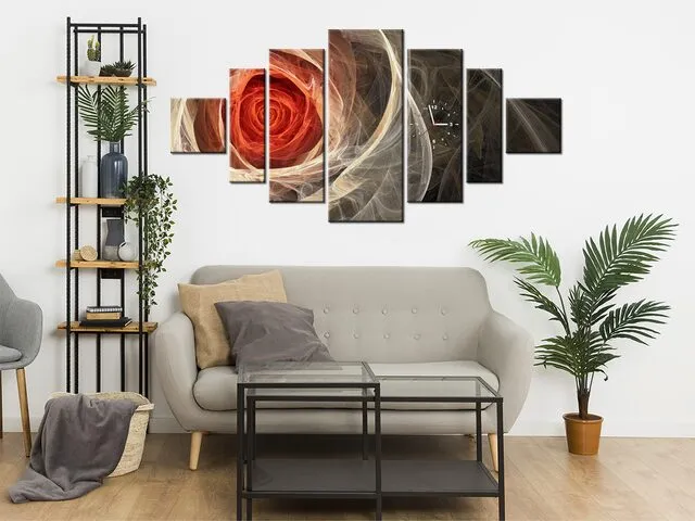 ZP4967A_5H Fraktálna ruža v oranžovej Obraz s hodinami |
