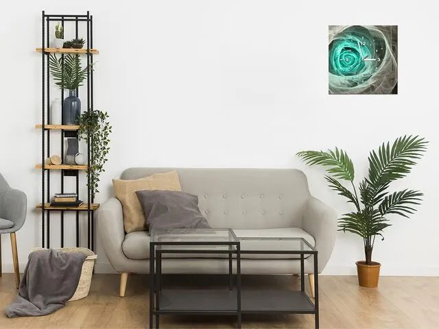 Barion Pixel Fraktálna ruža v tyrkyse Obraz s hodinami