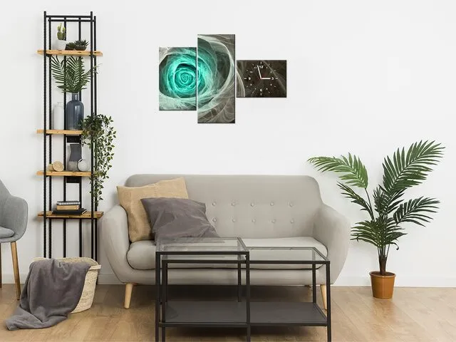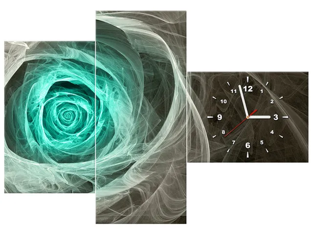ZP4972A_3AX Fraktálna ruža v tyrkyse Obraz s hodinami |