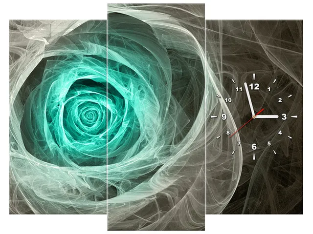 ZP4972A_3K Fraktálna ruža v tyrkyse Obraz s hodinami |