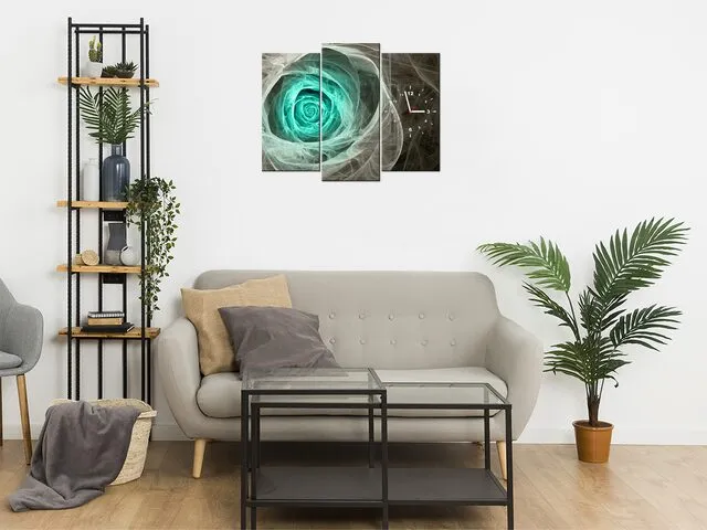 ZP4972A_4AN Fraktálna ruža v tyrkyse Obraz s hodinami |