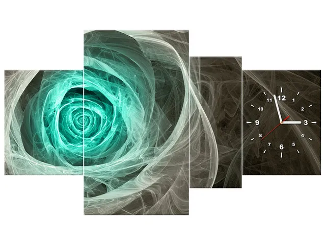 ZP4972A_3A Fraktálna ruža v tyrkyse Obraz s hodinami |