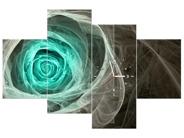 Úvod » Obrazy » Obrazy s hodinami » Fraktálna ruža v tyrkyse Obraz s hodinami