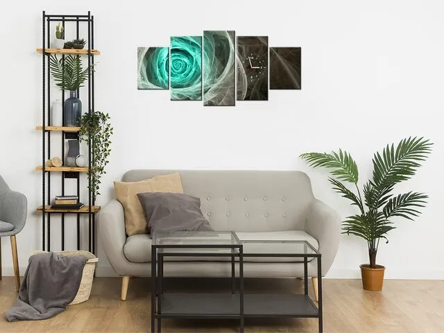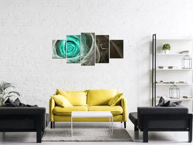 Úvod » Obrazy » Obrazy s hodinami » Fraktálna ruža v tyrkyse Obraz s hodinami