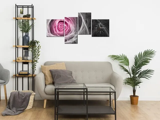 Barion Pixel Fraktálna ruža vo fuchsii Obraz s hodinami