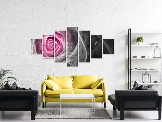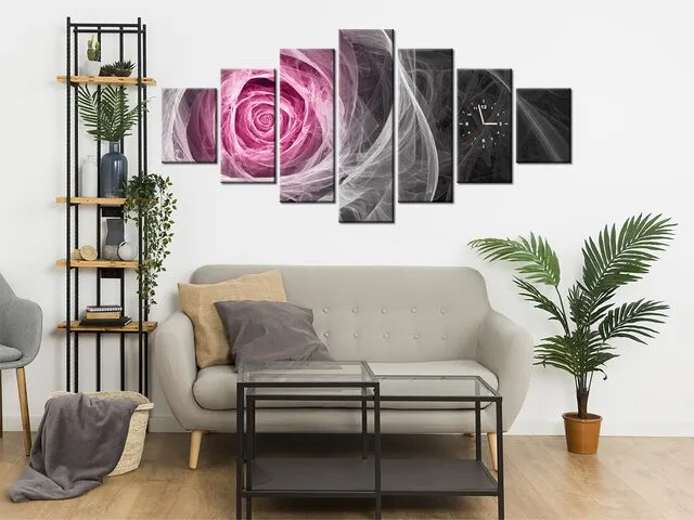 Barion Pixel Fraktálna ruža vo fuchsii Obraz s hodinami
