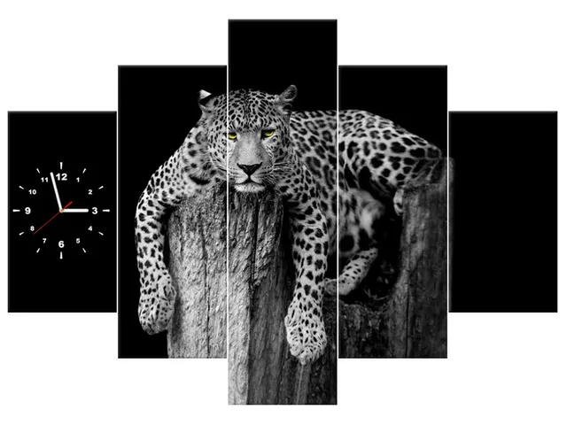 Úvod » Obrazy » Obrazy s hodinami » Hodiny Leopard na strome