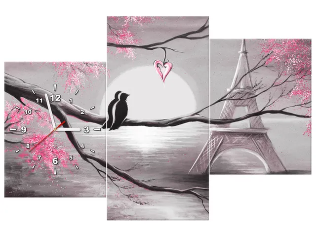 Úvod » Obrazy » Obrazy s hodinami » Hodiny Romantický východ slnka v Paríži v ružovej farbe