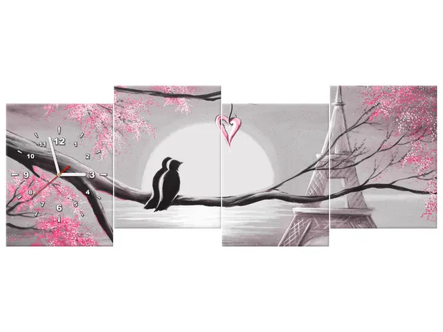 Úvod » Obrazy » Obrazy s hodinami » Hodiny Romantický východ slnka v Paríži v ružovej farbe