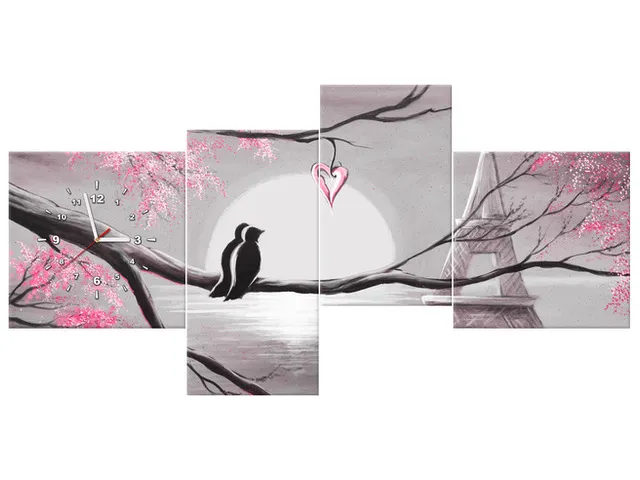Úvod » Obrazy » Obrazy s hodinami » Hodiny Romantický východ slnka v Paríži v ružovej farbe