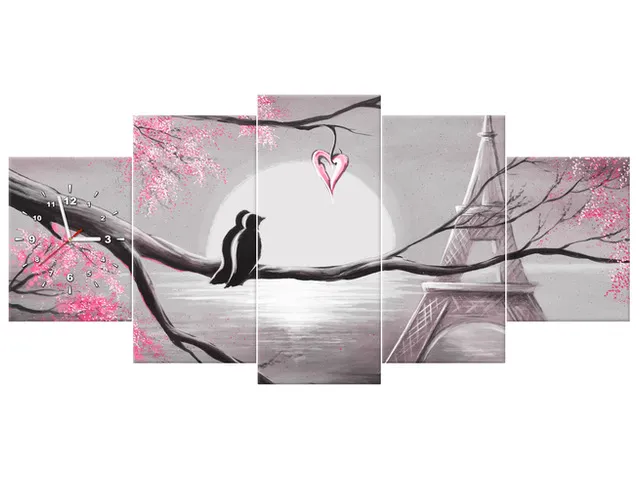 Úvod » Obrazy » Obrazy s hodinami » Hodiny Romantický východ slnka v Paríži v ružovej farbe