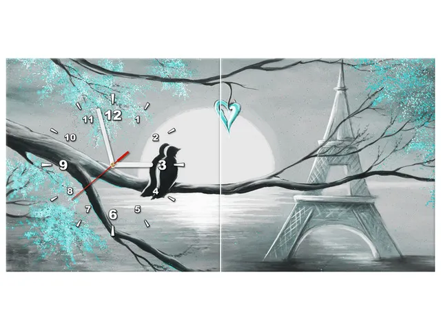 Úvod » Obrazy » Obrazy s hodinami » Hodiny Romantický východ slnka v Paríži v tyrkysovej farbe
