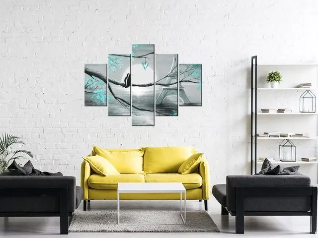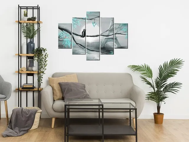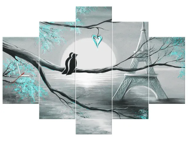 Úvod » Obrazy » Obrazy s hodinami » Hodiny Romantický východ slnka v Paríži v tyrkysovej farbe