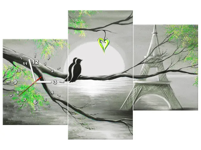 Úvod » Obrazy » Obrazy s hodinami » Hodiny Romantický východ slnka v Paríži v zelenej žiare
