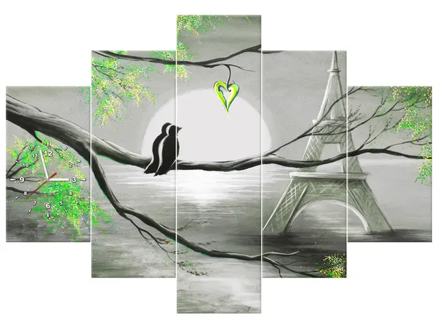 Úvod » Obrazy » Obrazy s hodinami » Hodiny Romantický východ slnka v Paríži v zelenej žiare