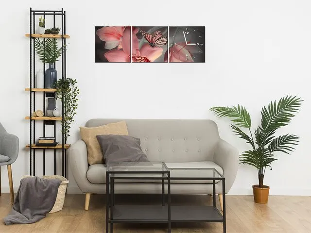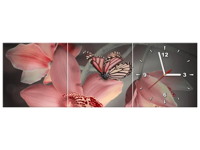 Úvod » Obrazy » Obrazy s hodinami » Hodiny do obývačky Motýľ na orchidey