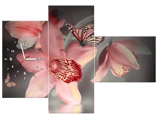 Úvod » Obrazy » Obrazy s hodinami » Hodiny do obývačky Motýľ na orchidey