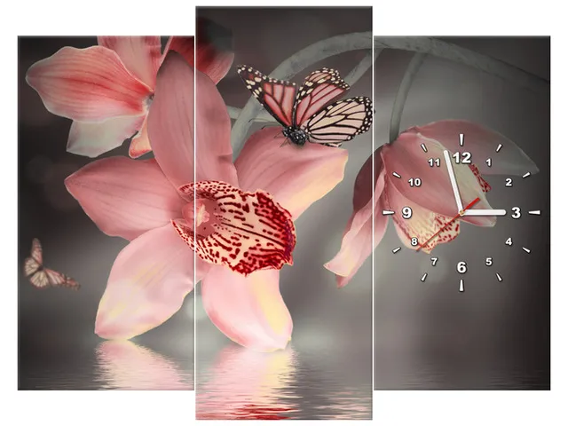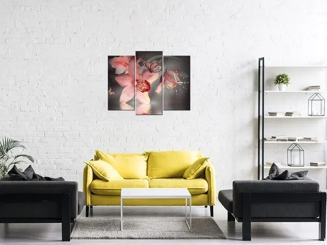 Úvod » Obrazy » Obrazy s hodinami » Hodiny do obývačky Motýľ na orchidey