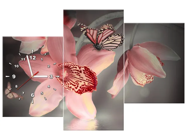 Úvod » Obrazy » Obrazy s hodinami » Hodiny do obývačky Motýľ na orchidey