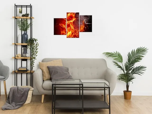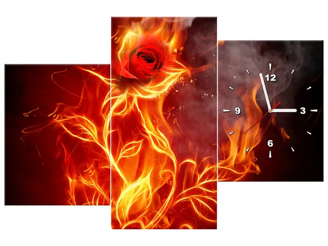 Úvod » Obrazy » Obrazy s hodinami » Hodiny do obyvačky Ohnivá ruža
