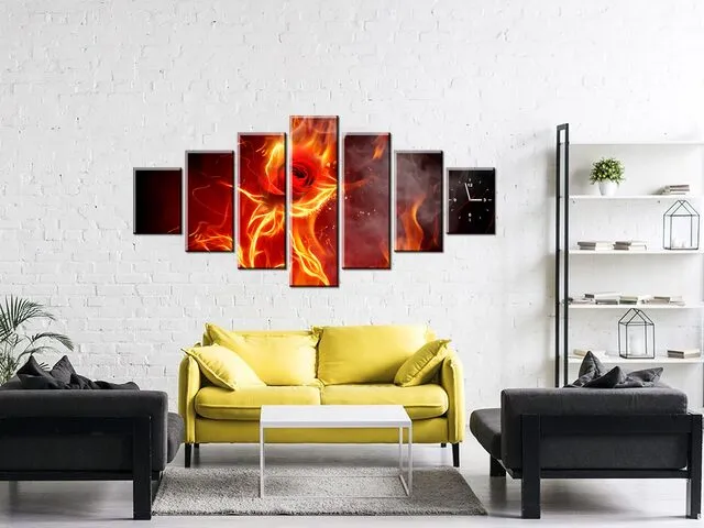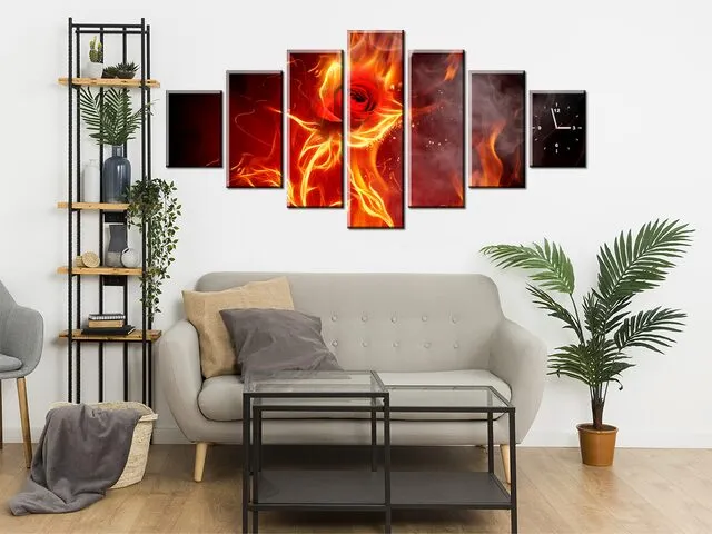 Úvod » Obrazy » Obrazy s hodinami » Hodiny do obyvačky Ohnivá ruža