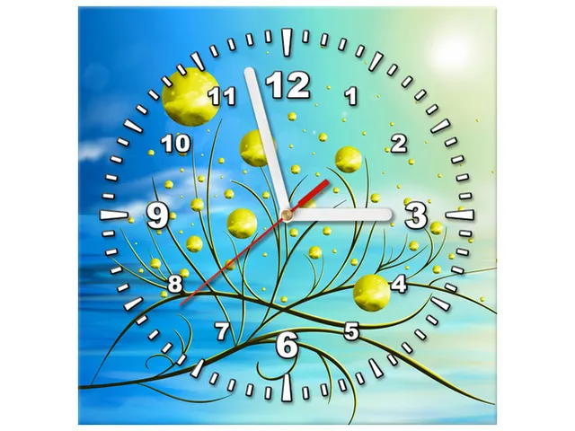 Úvod » Obrazy » Obrazy s hodinami » Hodiny na plátne Žlté gule v prameňoch ranného slnka