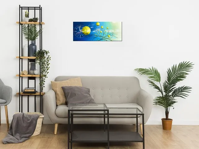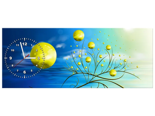 Úvod » Obrazy » Obrazy s hodinami » Hodiny na plátne Žlté gule v prameňoch ranného slnka