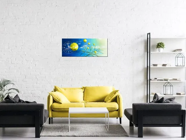 ZP5601A_3AX Hodiny na plátne Žlté gule v prameňoch ranného slnka |