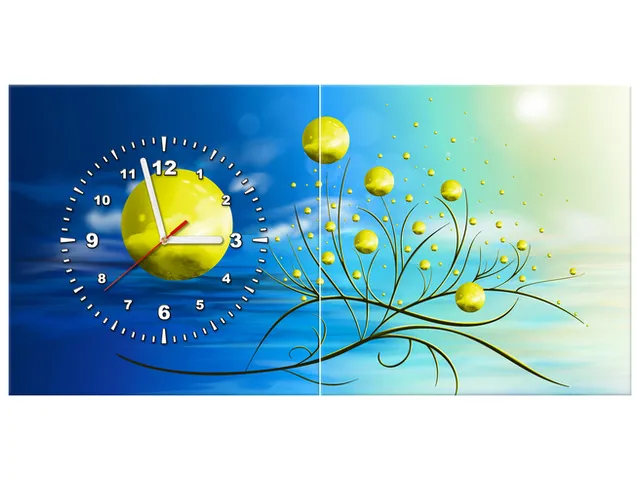 Úvod » Obrazy » Obrazy s hodinami » Hodiny na plátne Žlté gule v prameňoch ranného slnka