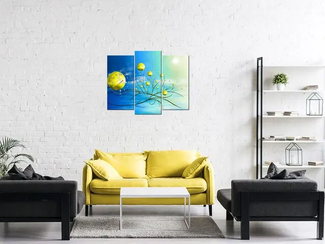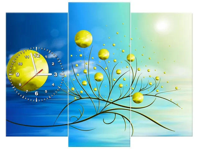 Úvod » Obrazy » Obrazy s hodinami » Hodiny na plátne Žlté gule v prameňoch ranného slnka