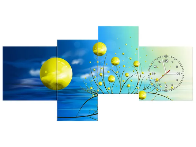 Úvod » Obrazy » Obrazy s hodinami » Hodiny na plátne Žlté gule v prameňoch ranného slnka