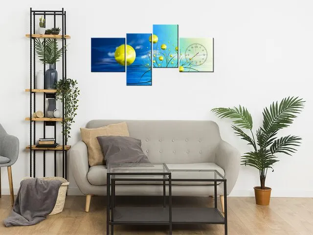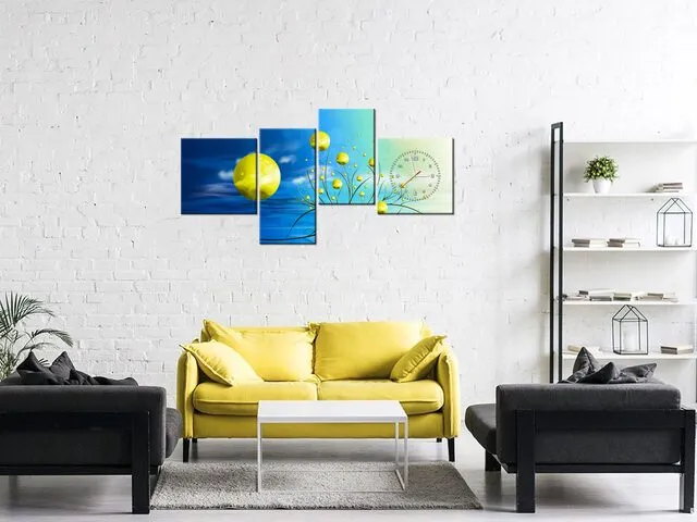 ZP5601A_3AX Hodiny na plátne Žlté gule v prameňoch ranného slnka |