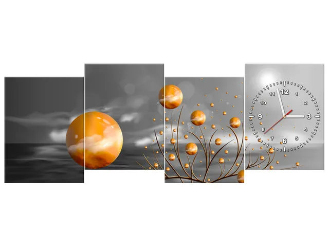 ZP5605A_3AW Hodiny na stenu Obraz oranžové gule v noci |