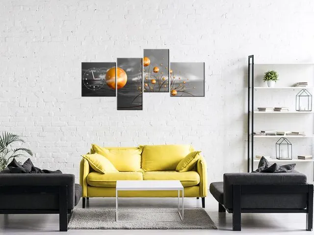 Úvod » Obrazy » Obrazy s hodinami » Hodiny na stenu Obraz oranžové gule v noci