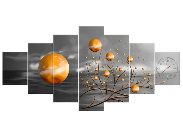 ZP5605A_4AN Hodiny na stenu Obraz oranžové gule v noci |