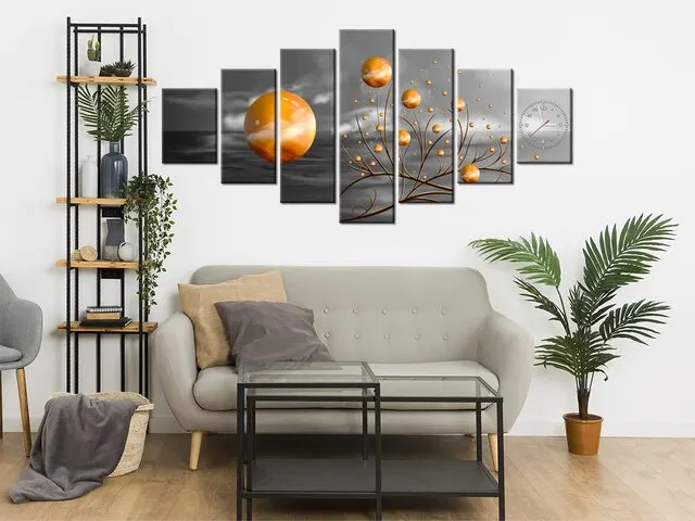 Úvod » Obrazy » Obrazy s hodinami » Hodiny na stenu Obraz oranžové gule v noci
